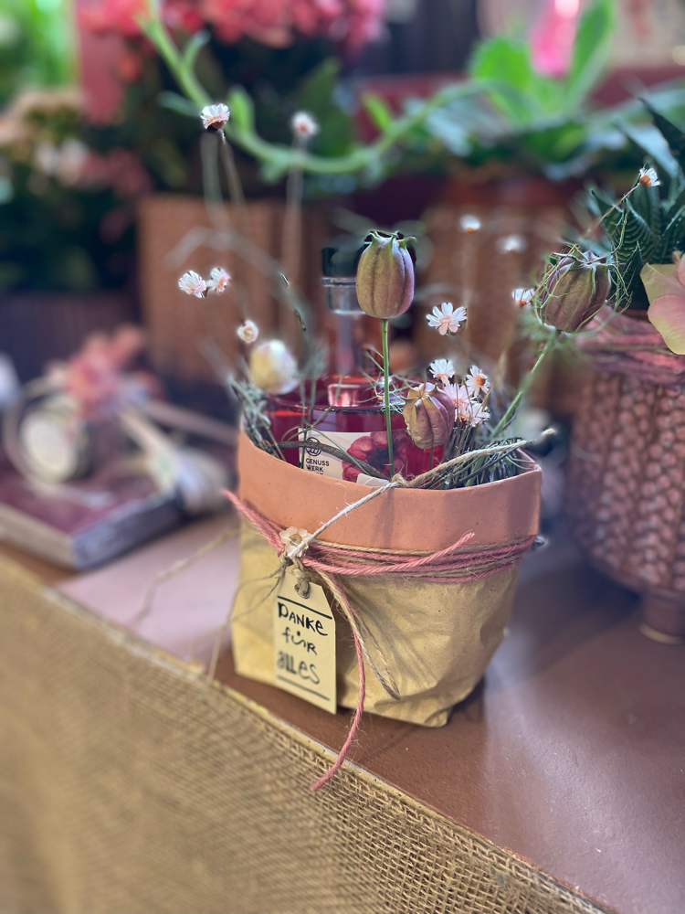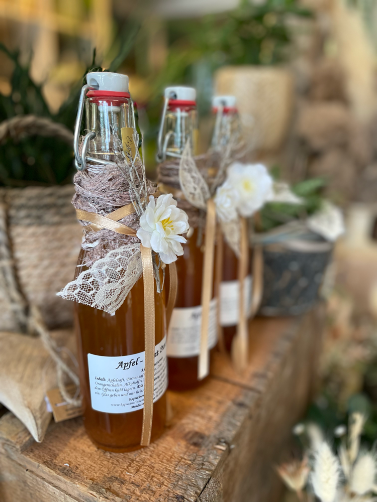 Ob eine Einladung zum Essen oder auf einen spontanen Besuch, mit leeren Händen geht man selten gerne. Wenn es etwas anderes als Schnittblumen sein darf haben wir eine fein auserlesene Auswahl an Geschenken aus regionaler Produktion. Natürlich durch uns floral veredelt.